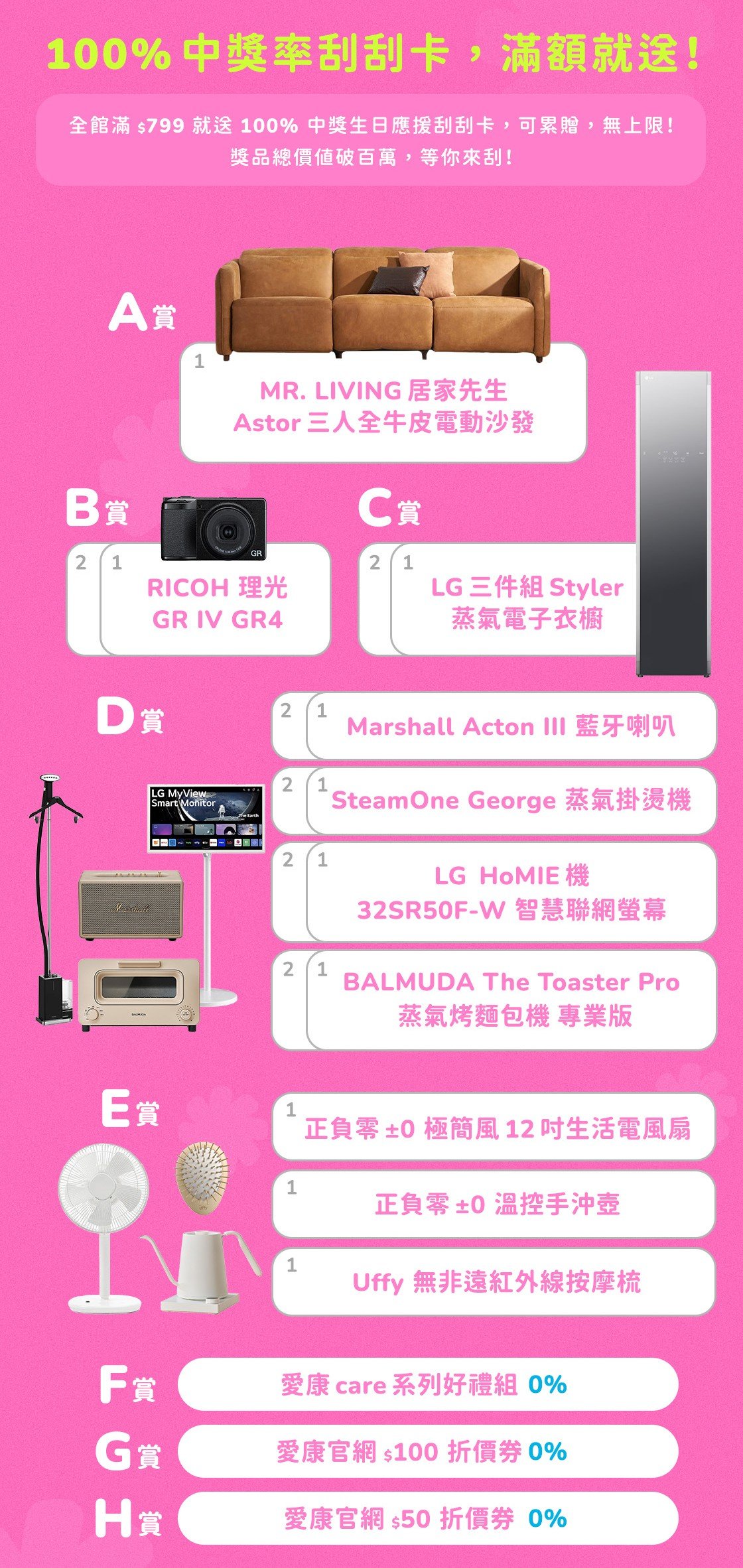 愛康週年慶|全館滿$799送刮刮卡,百萬獎品等你來刮!