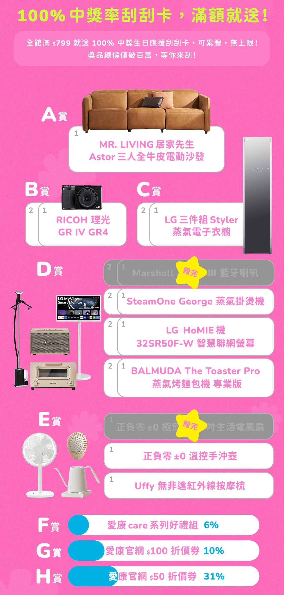 12/1-1/4愛康週年慶|全館滿$799送刮刮卡,百萬獎品等你來刮!