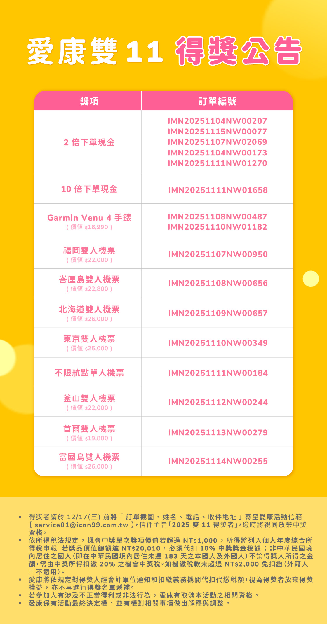 2025 愛康雙 11 中獎名單出爐!